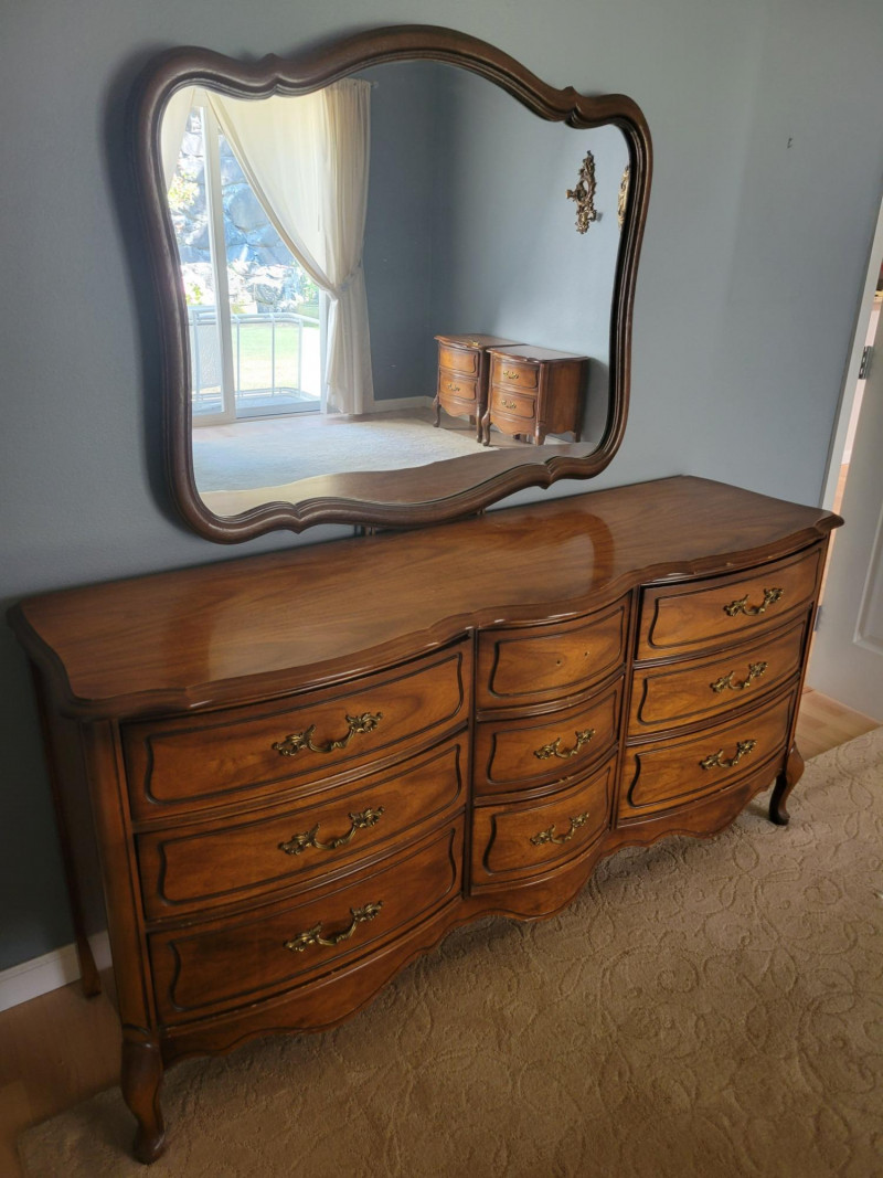 Lot # 3 - Stunning Broyhill French Provincial Dresser with Mirror Starting Bid: $ 5.00 Bids: This sale will end in: |
