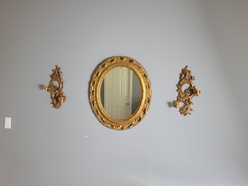Lot # 26 - Ornate Gilded Mirror, Wall Sconces & T.V. Starting Bid: $ 5.00 Bids: This sale will end in: |