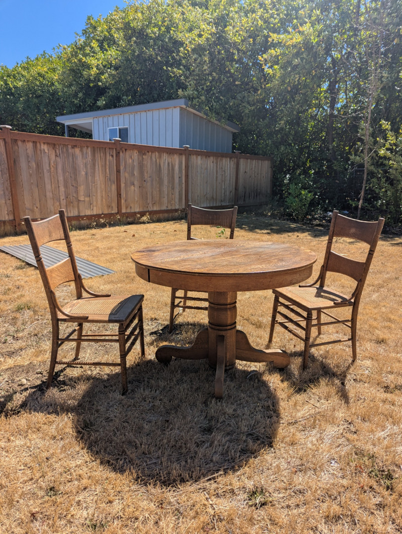 Lot # 96 - Round Antique Table and Three Chairs Starting Bid: $ 5.00 Bids: This sale will end in: |