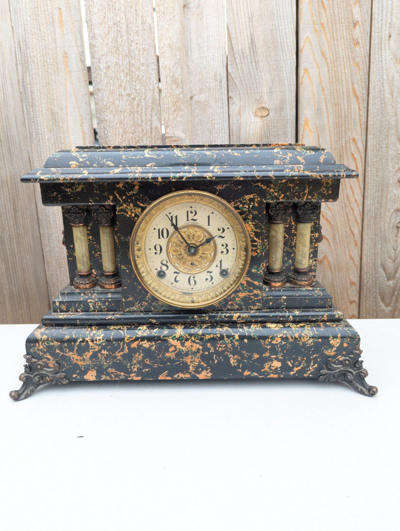 Lot # 102 - Vintage Table/Mantel Clock (not functional, but fixable) Starting Bid: $ 5.00 Bids: This sale will end in: |