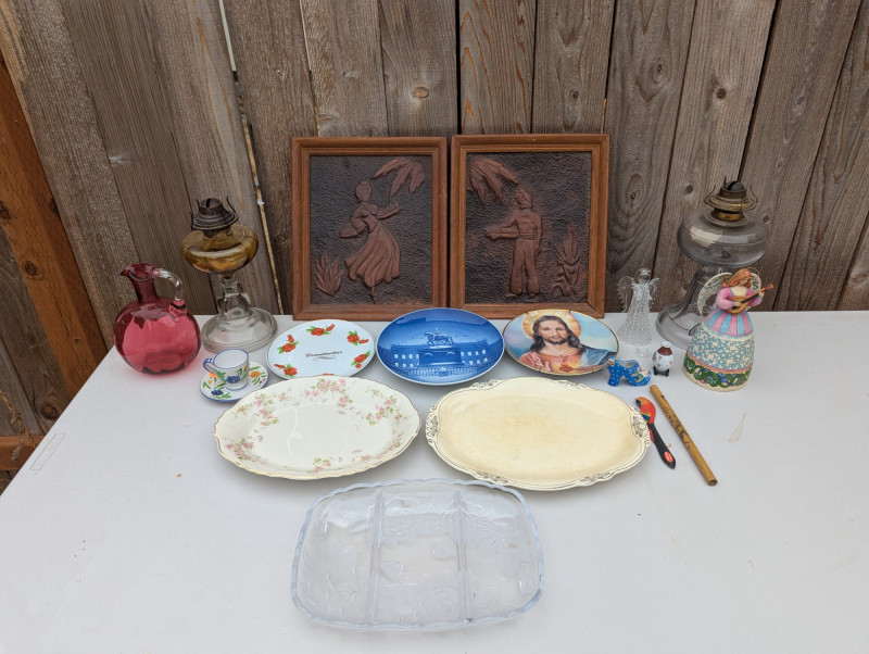 Lot # 108 - Copper Wall Decor, Oil Lamps, Deco Plates and Figurines Starting Bid: $ 5.00 Bids: This sale will end in: |