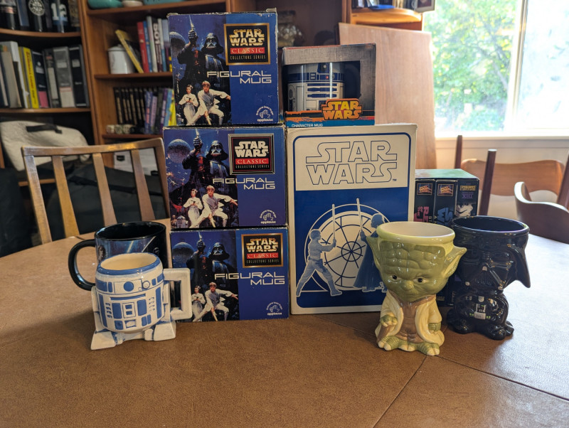 Lot # 138 - Star Wars Mug and Beer Stein Collection with Original 4,5,6 VHS Set Starting Bid: $ 5.00 Bids: This sale will end in: |