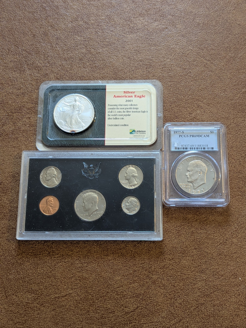 Lot # 9 - 1971 American Coins, 2001 Silver Dollar Coin and 1977 One Dollar Coin Starting Bid: $ 5.00 Bids: This sale will end in: |