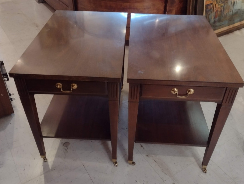 Lot # 20 - Pair of Mid Century Mersman Mahogany Side Tables Starting Bid: $ 5.00 Bids: This sale will end in: |