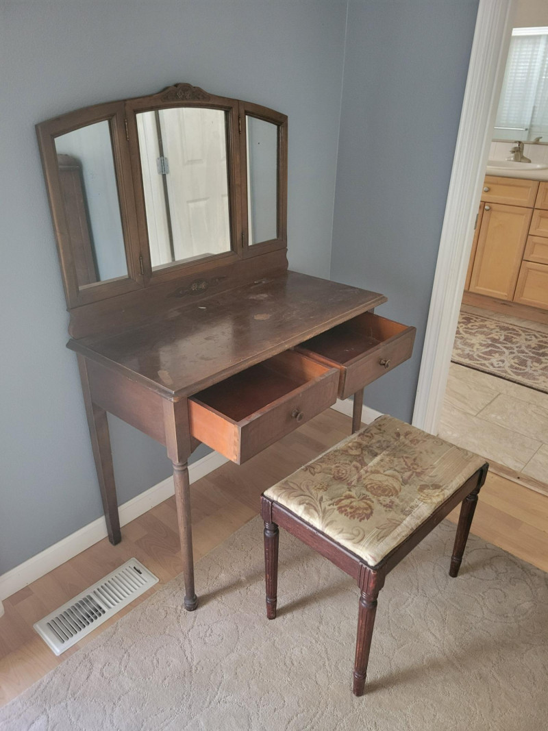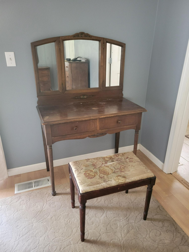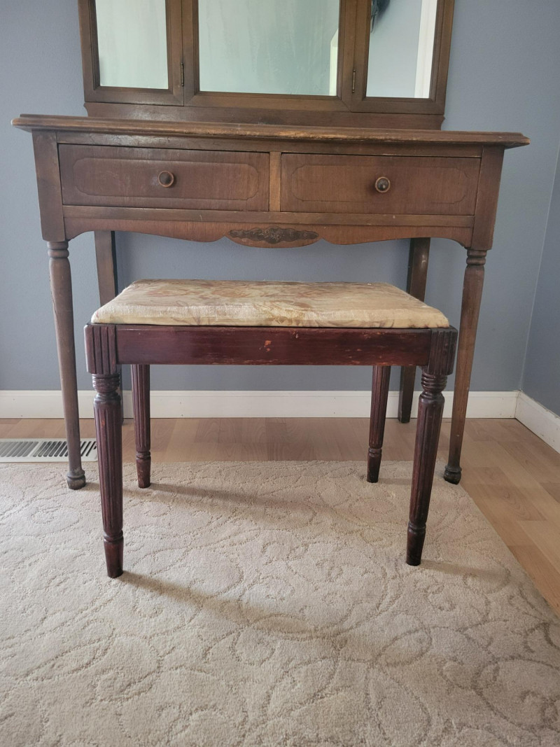 Lot # 22 - Antique Vanity / Dressing Table & Stool