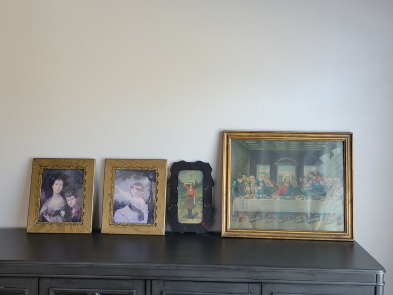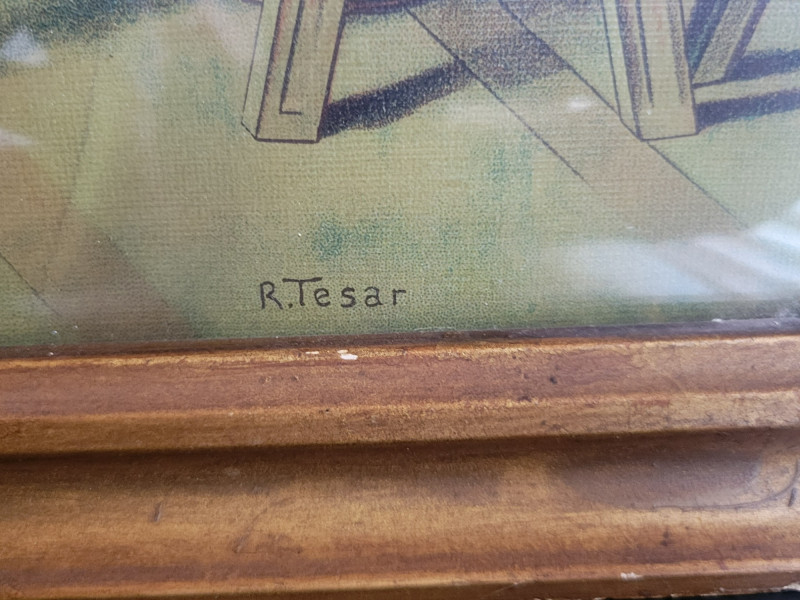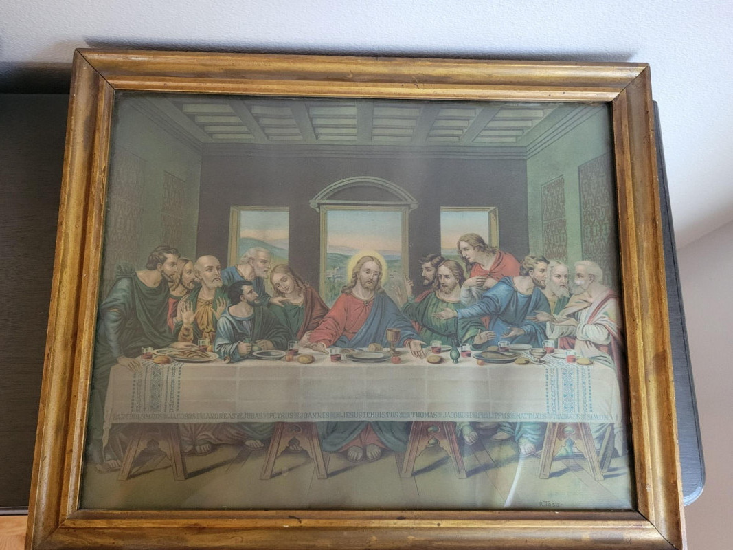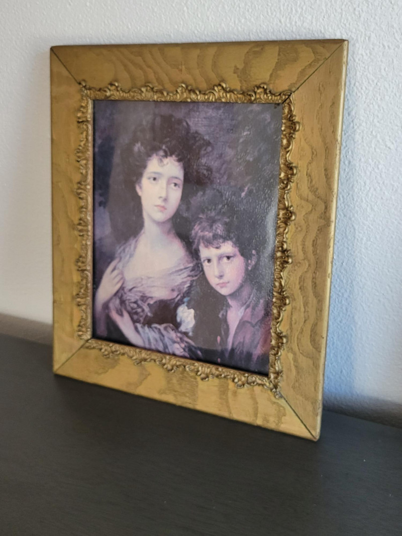 A curated grouping of framed prints and chromolithographs featuring classic subject matter and historic artistry: "Elizabeth & Thomas Linley" by Thomas Gainborough (c.1768), framed print, approx. 13.5 H x 11.5 W "Master Hare" (18th century portrait of Francis George Hare) by Joshua Reynolds, framed print, approx. 13.5 H x 11.5 W Antique Chromolithograph, "Girl with Pickaxe" by H.M. Pollock (c. 1905), signed and framed, approx. 13 H x 8.5 W "The Last Supper" by R. Tesar, large framed print, approx. 22 W x 18.5 H Together, these works showcase a range of styles and time periods, from the elegance of the 18th-century portraiture to the rich tones of early 20th-century chromolithographs and devotional imagery. Beautifully framed and ready to display, they offer collectors and decorators alike a window into classic artistic traditions.