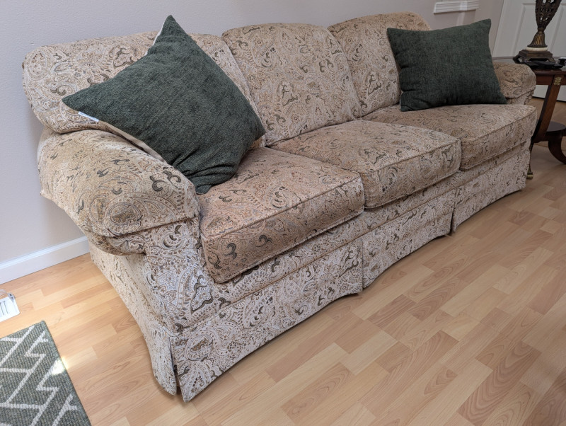 Lot # 12 - Beautiful Tan and Green Paisley Couch