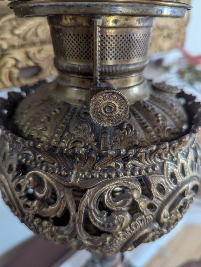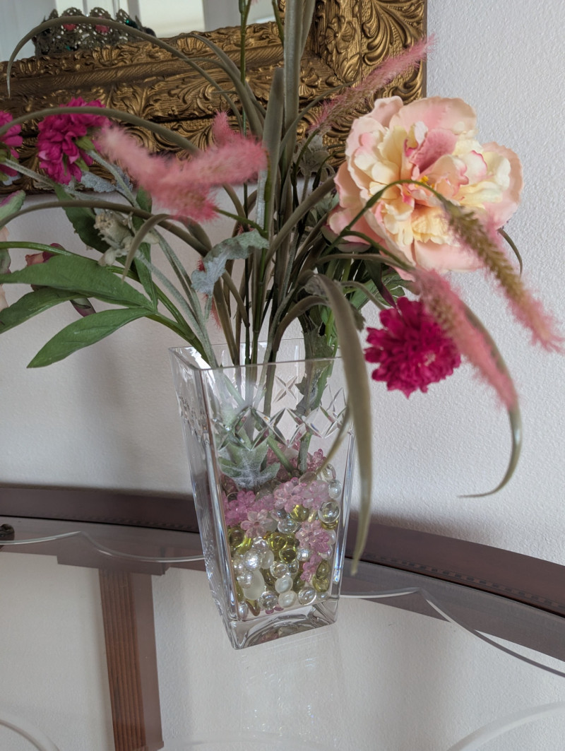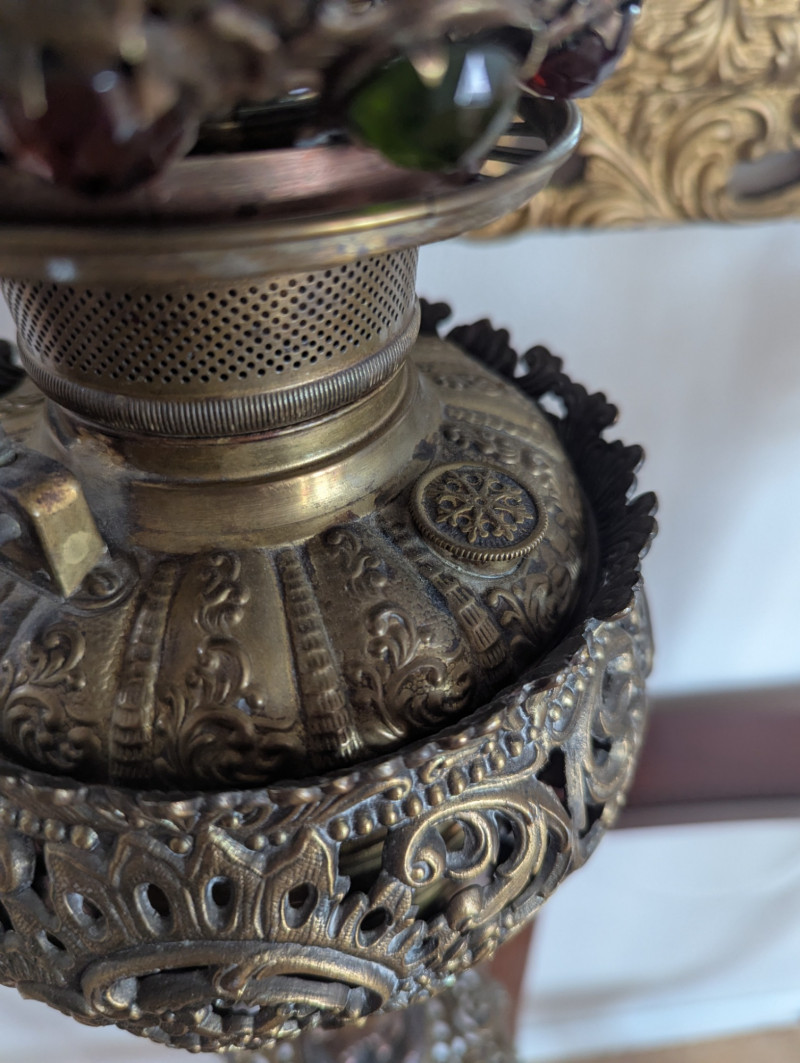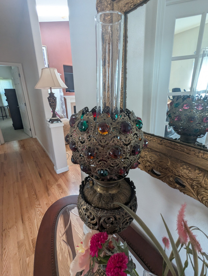 Lot # 54 - Ornate Gold Mirror, Jeweled lamp & Crystal-Style Vase