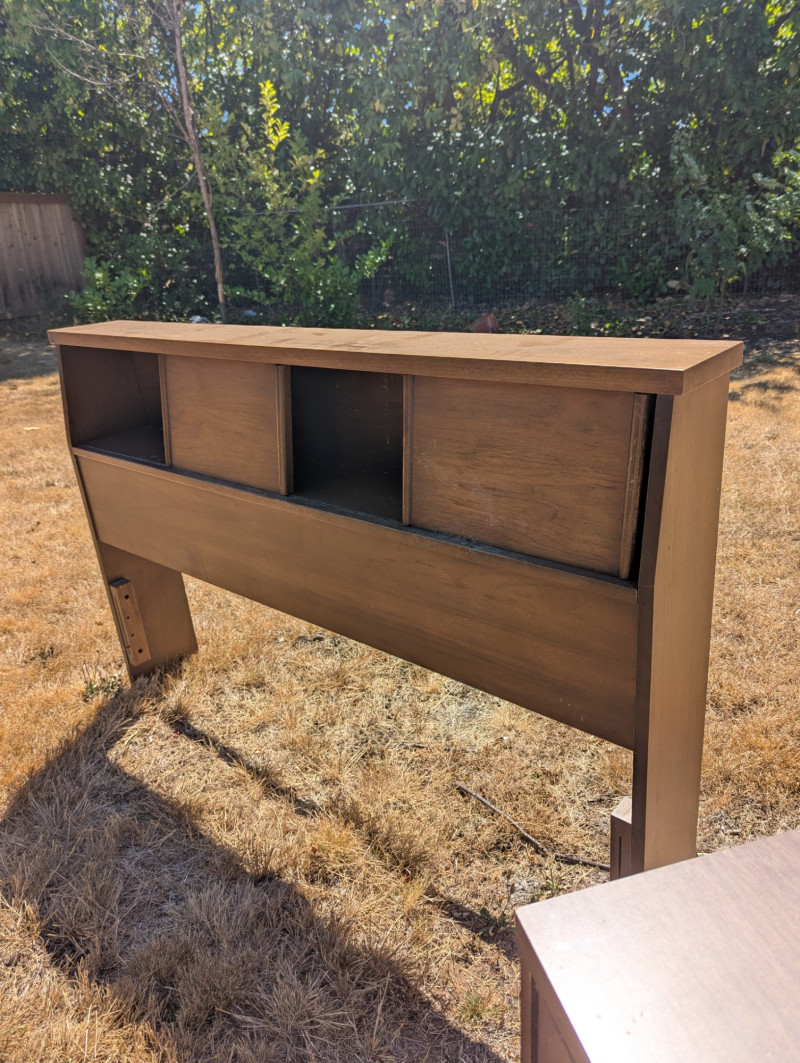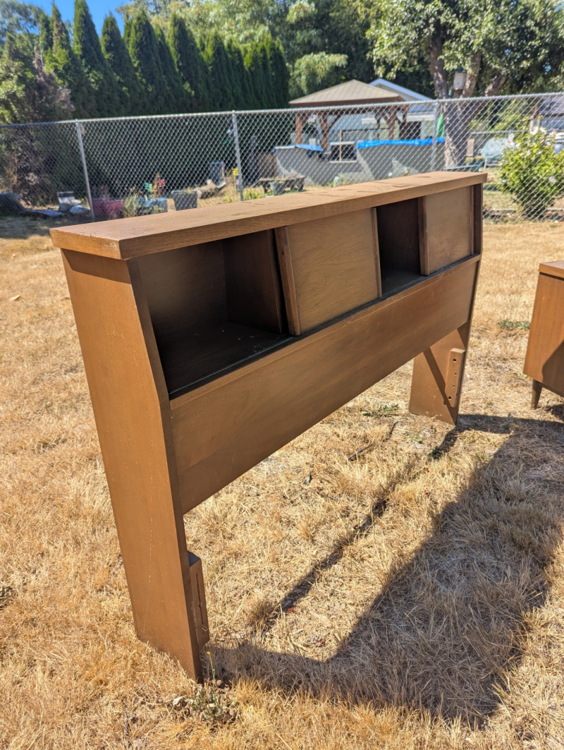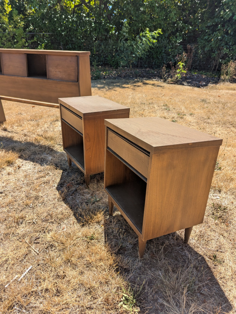 Lot # 97 - Mid Century Broyhill Saga Headboard with End Tables