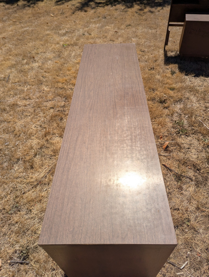 A lovely Mid Century Modern (Broyhill Pacemaker Style) 9 drawer dresser with a laminated top. Perfect for setting plants on or any drinks and not have to worry about any rings! A style that matches any home and can fit in almost any type of room. Dimensions are: 66L x 31H x 13W