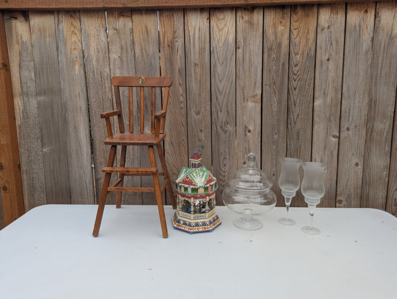 Lot # 105 - Doll Chair, Musical Carousel, Apothocary Vase and Votive Candle Holder