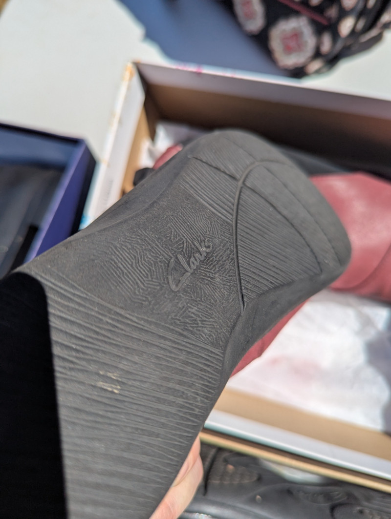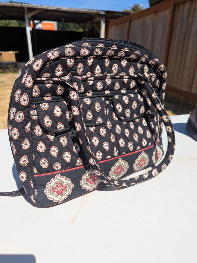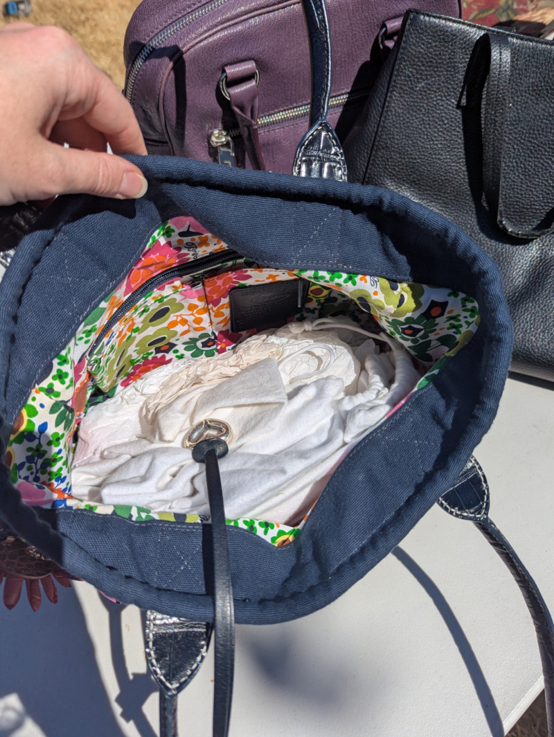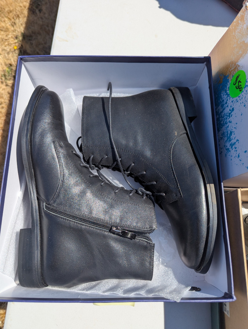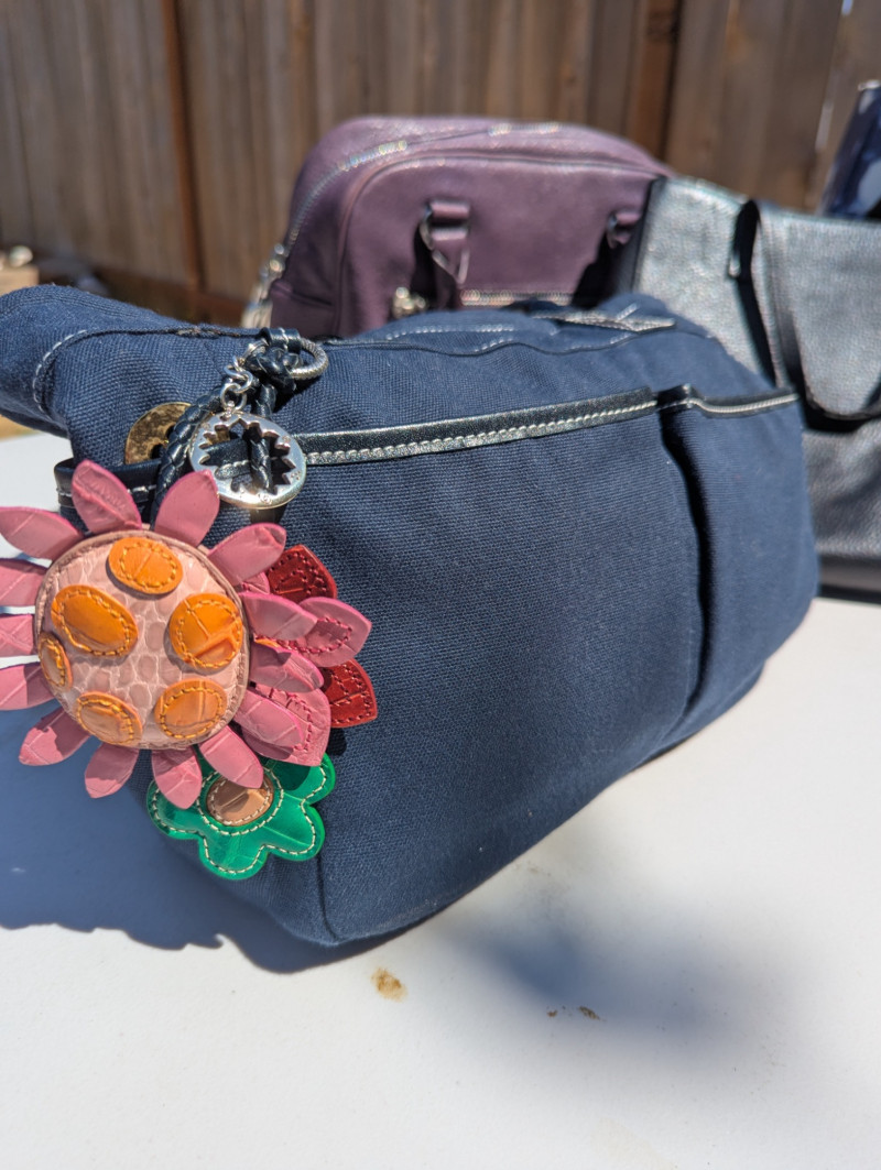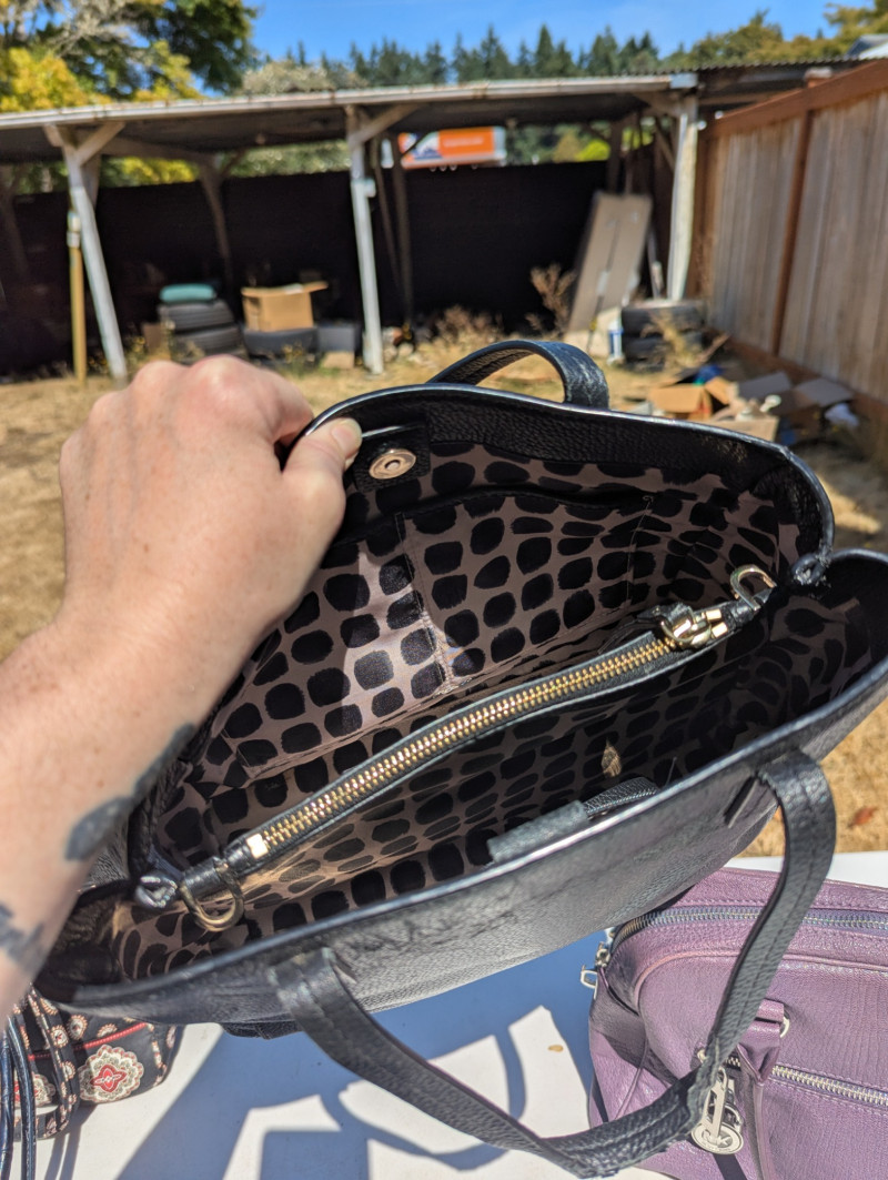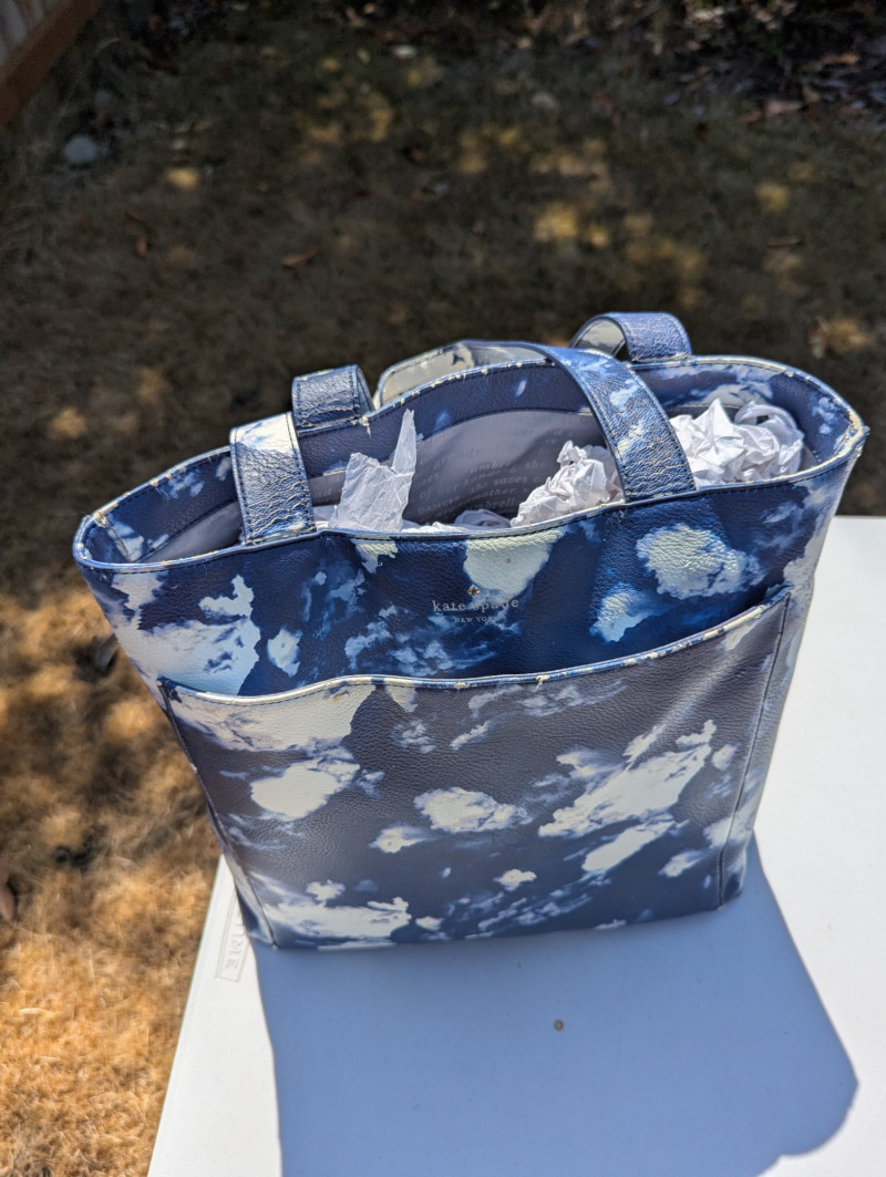 There are two Kate Spade Purses, one is Black and the other is Skyblue with clouds. There is one Purple Michael Kors purse. One Blue Brighten purse. And two fabric/carpet style purses. Then All shoes are a women's 8.5. All are in pretty good condition. Most look barely used.