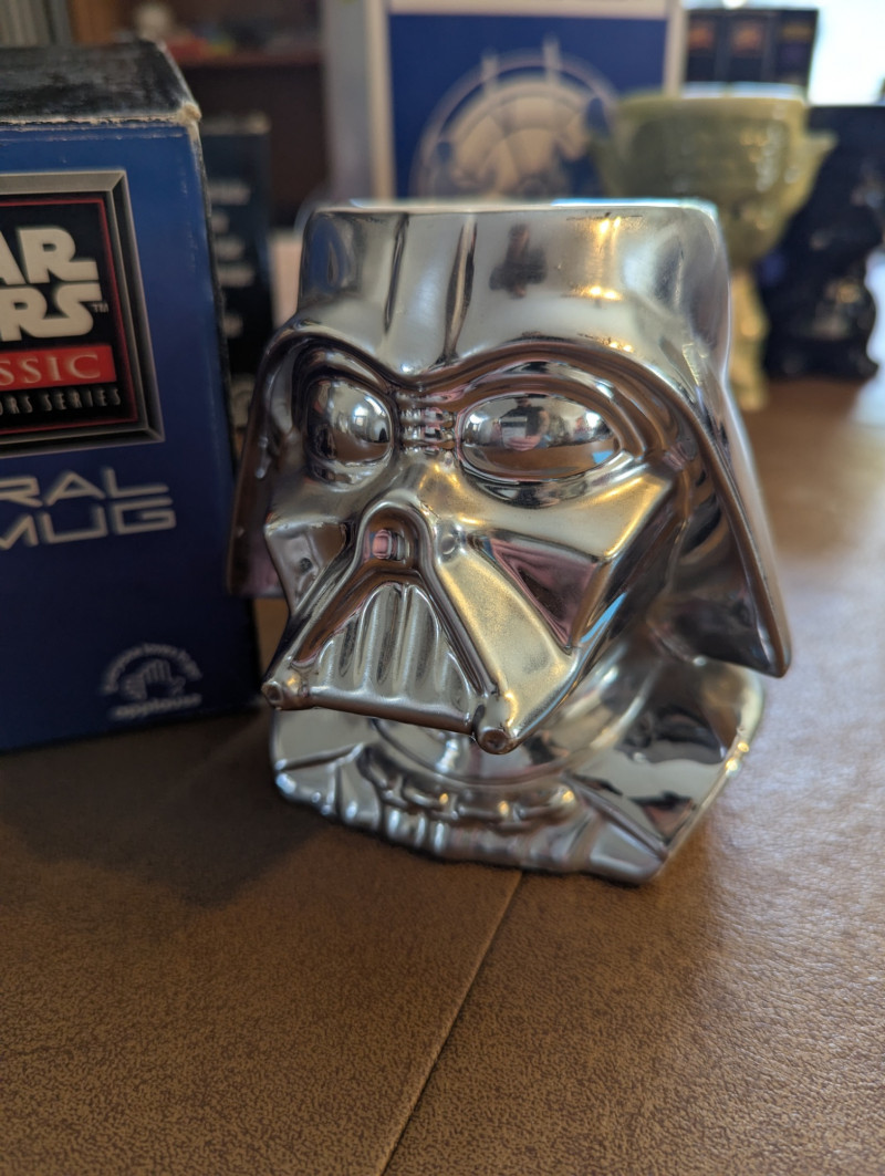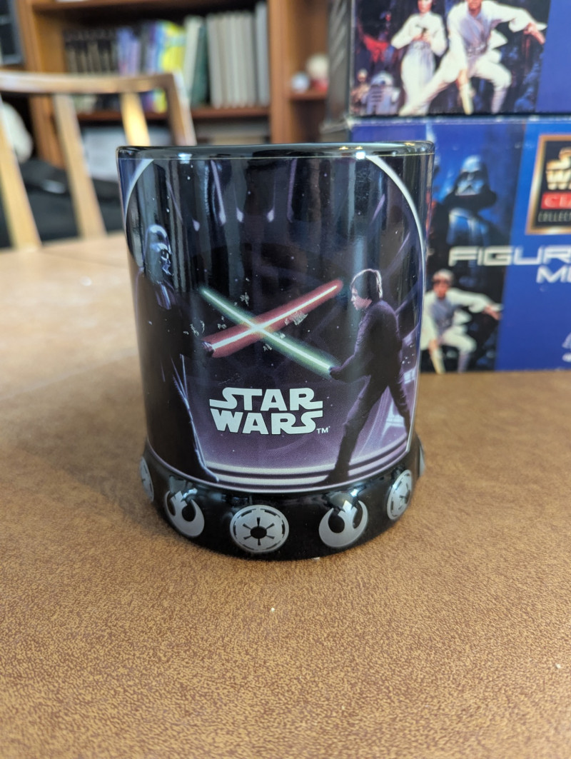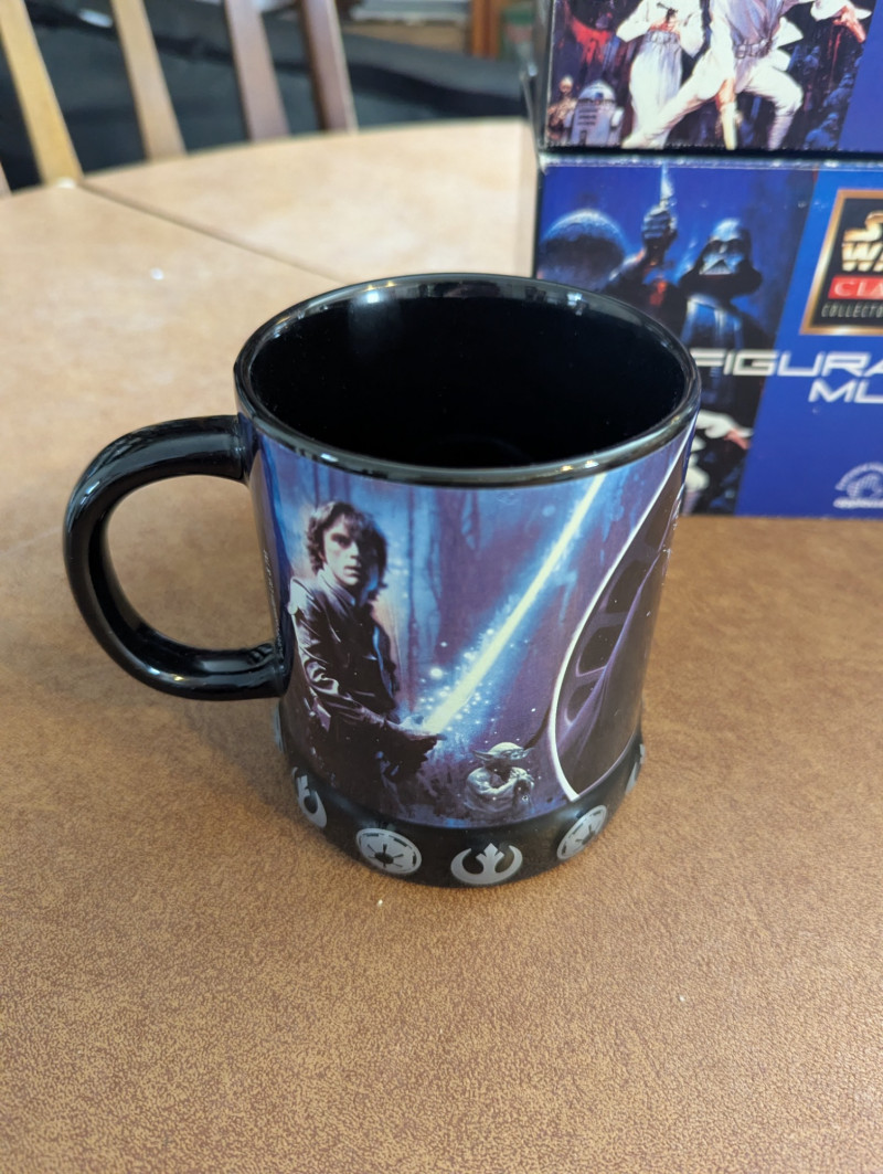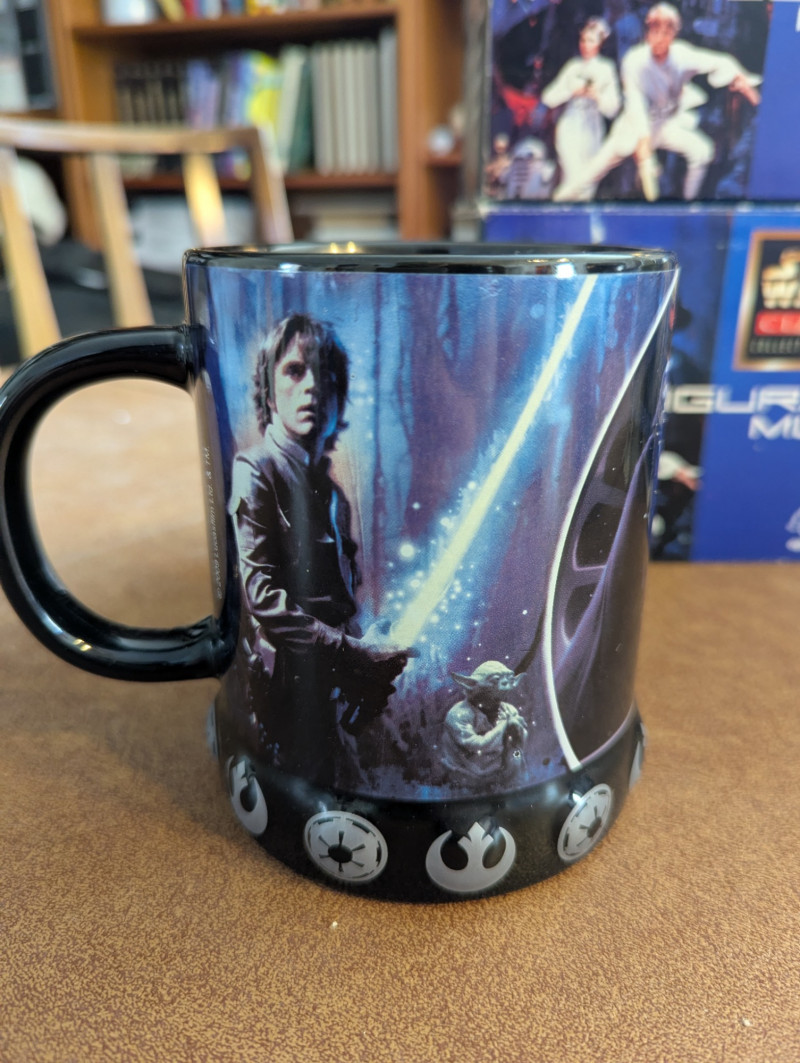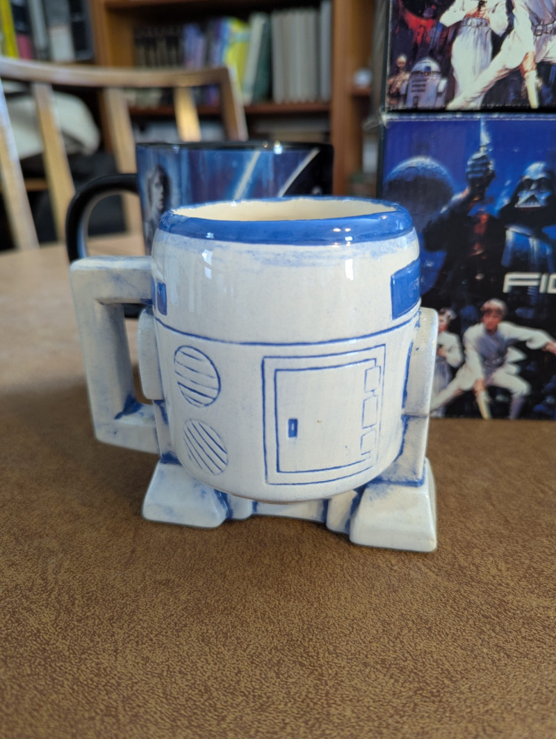 A Star Wars lover's coffee bar dream! They've never been used and all in great condition. And they come with the original 4,5,6 VHS set! Enjoy geeking out by sipping some blue milk out of one these awesome mugs. The beer stein is our personal favorite!