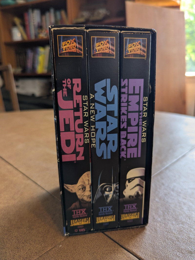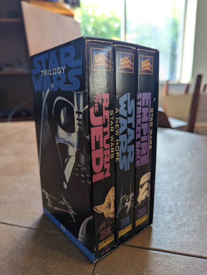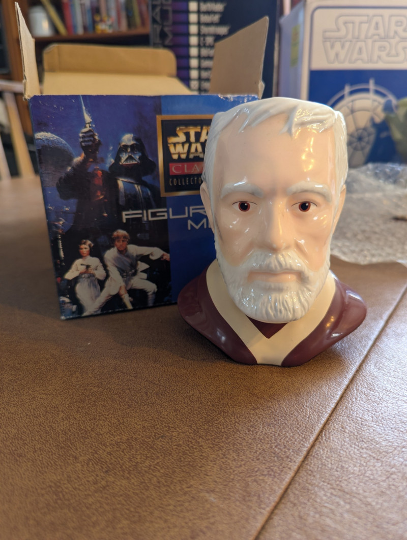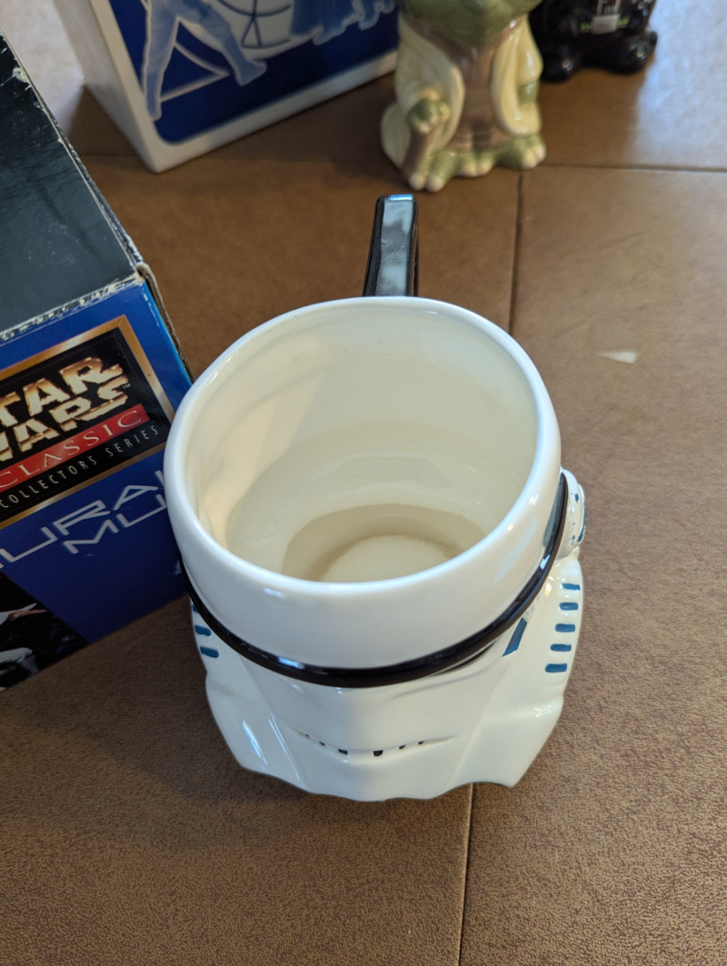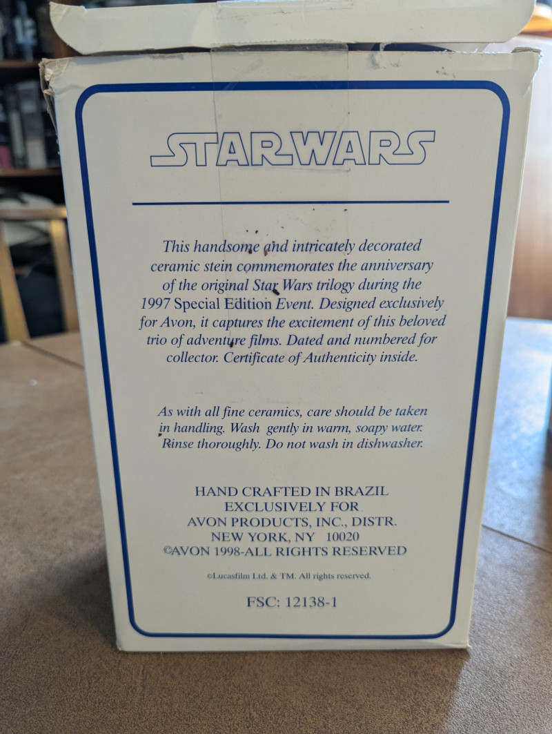 A Star Wars lover's coffee bar dream! They've never been used and all in great condition. And they come with the original 4,5,6 VHS set! Enjoy geeking out by sipping some blue milk out of one these awesome mugs. The beer stein is our personal favorite!