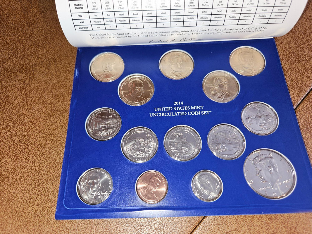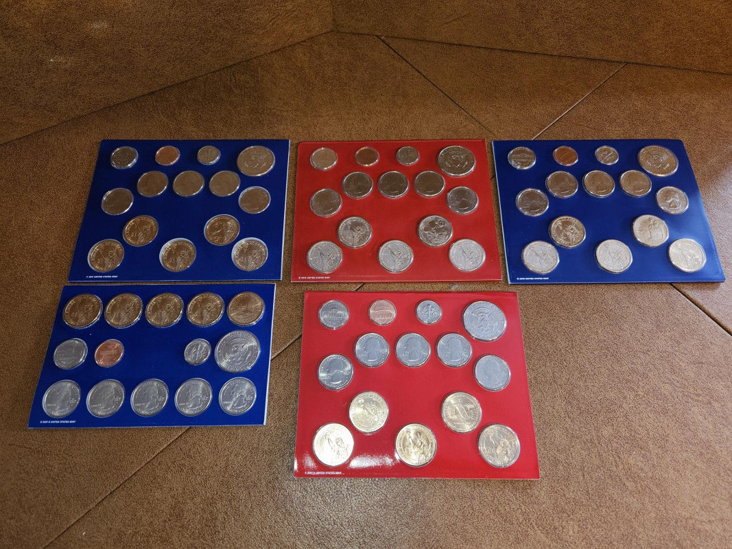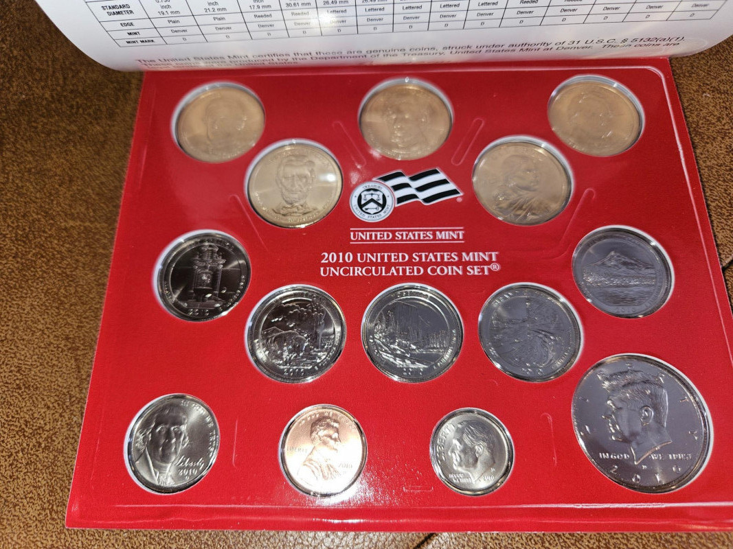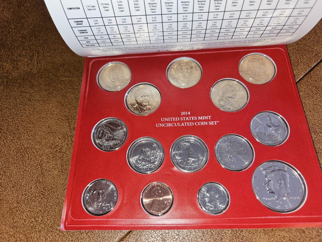 5 Amazing sets of uncirculated American coins. Specifically, we have: Uncirculated Philadelphia coins from 2008, 2012 and 2014 Uncirculated Denver coins from 2010 and 2014 All are sealed in plastic and paper/cardboard ensuring they are safe from oils and dirt.