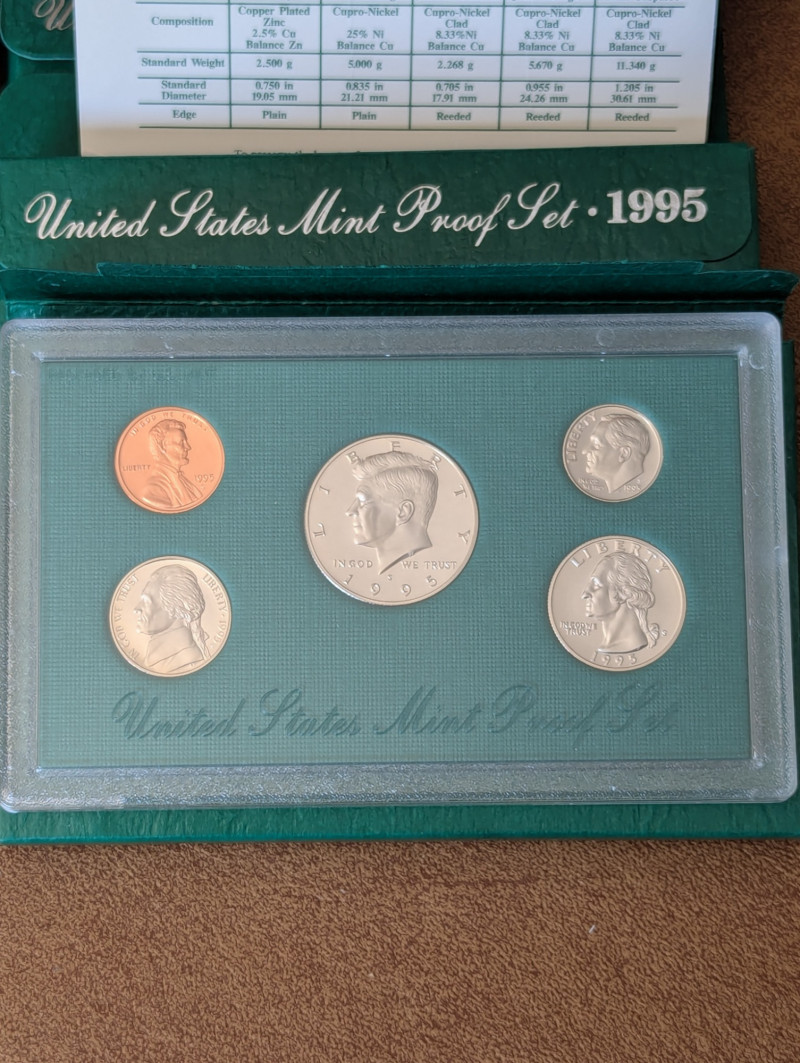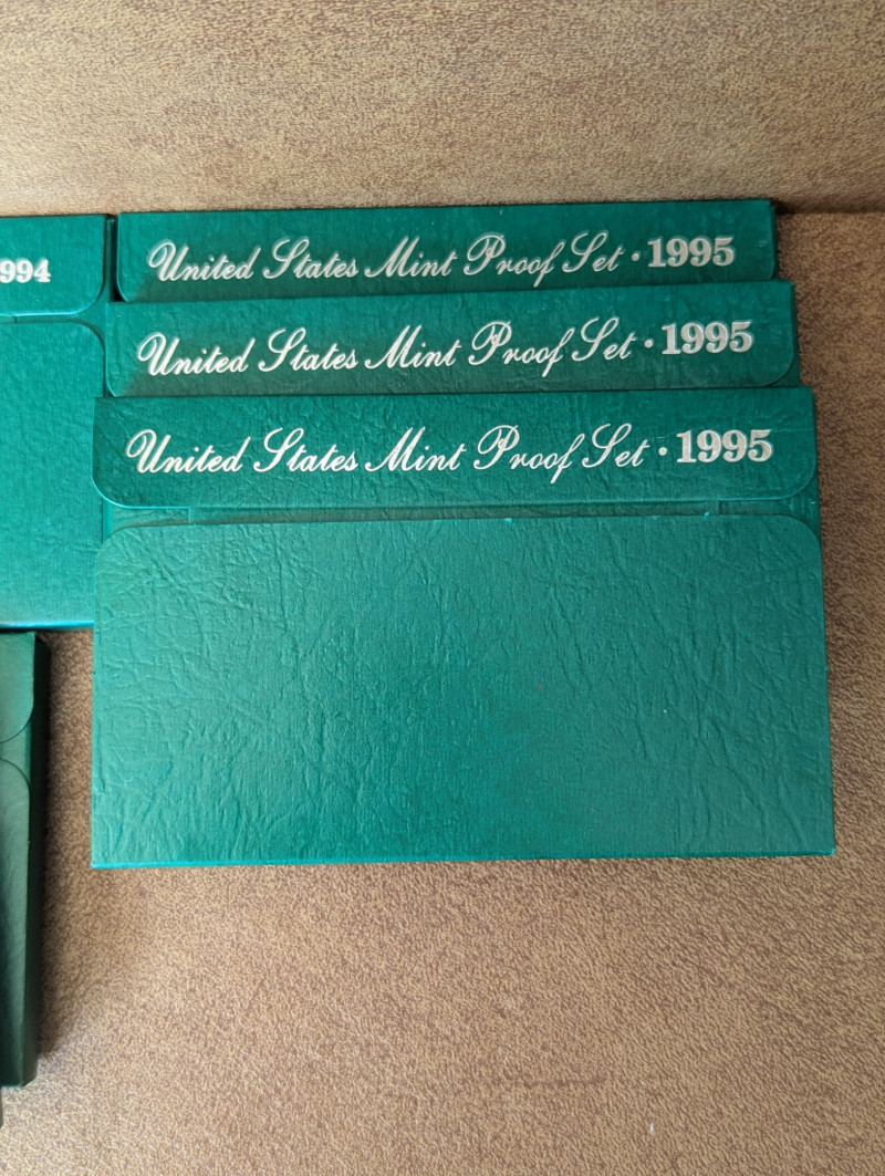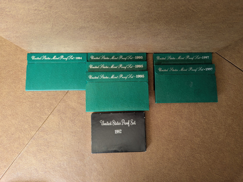 Excellent collection of United States mint proof sets. There are: 1 from 1982 1 from 1994 3 from 1995 and 2 from 1997 All sealed in hard plastic, ensuring the coins are safe from oils and dirt.